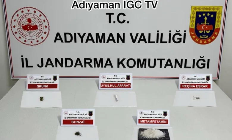 Adıyaman İl Jandarma Komutanlığı ekipleri, il merkezi ve ilçelerinde uyuşturucu satıcıları ve kullanıcılarına yönelik geniş çaplı bir operasyon gerçekleştirdi. Operasyon kapsamında yapılan aramalarda 450 gram metanfetamin, 7 gram skunk, 3 gram reçine esrar, 2 gram bonzai ve 1 adet aparat ele geçirildi.
