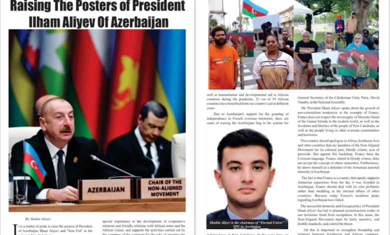 Yazıda, Yeni Kaledonya’da düzenlenen eylemde Azerbaycan Cumhurbaşkanı İlham Aliyev ve “Demir Yumruk” posterlerinin gururla asıldığına, Azerbaycan Cumhurbaşkanı’nın Bağlantısızlar Hareketine başkanlığı döneminde yükselişten bahsettiğine dikkat çekildi. Dünyada neo-sömürgeciliğin Fransa örneğinde, Gamar Takımadaları’ndaki Mayotte Adası’nın yanı sıra Yeni Kaledonya halkları da dahil olmak üzere diğer denizaşırı topluluklarda yaşayan insanların hak ve özgürlüklerine saygı gösterilmemesi konusundaki görüşlerini paylaştı.