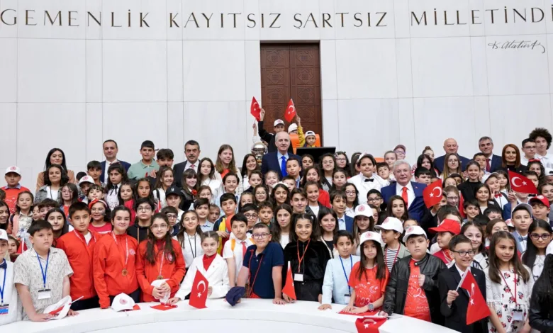 Genel Kurul Salonu’nda ağırladıkları çocuklara işaret eden Numan Kurtulmuş, “‘Hâkimiyet kayıtsız şartsız milletindir.’ düsturu altında, inşallah, aranızdan çok sayıda evladımızın gelecekte bu Meclis çatısı altında ülkeyi yöneteceğini biliyoruz. Hepinize başarılar diliyorum.” diye konuştu.
